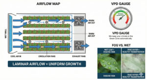 ❌ VPD Imbalance: Low humidity causes plants to close stomata, halting growth.